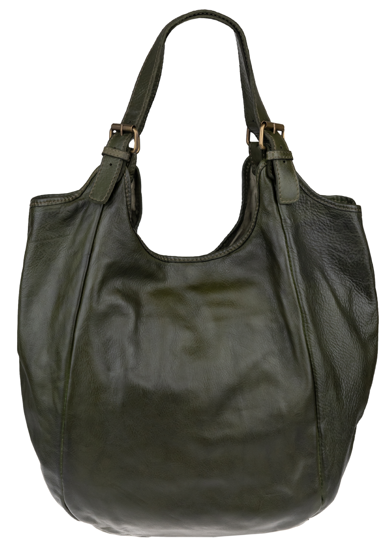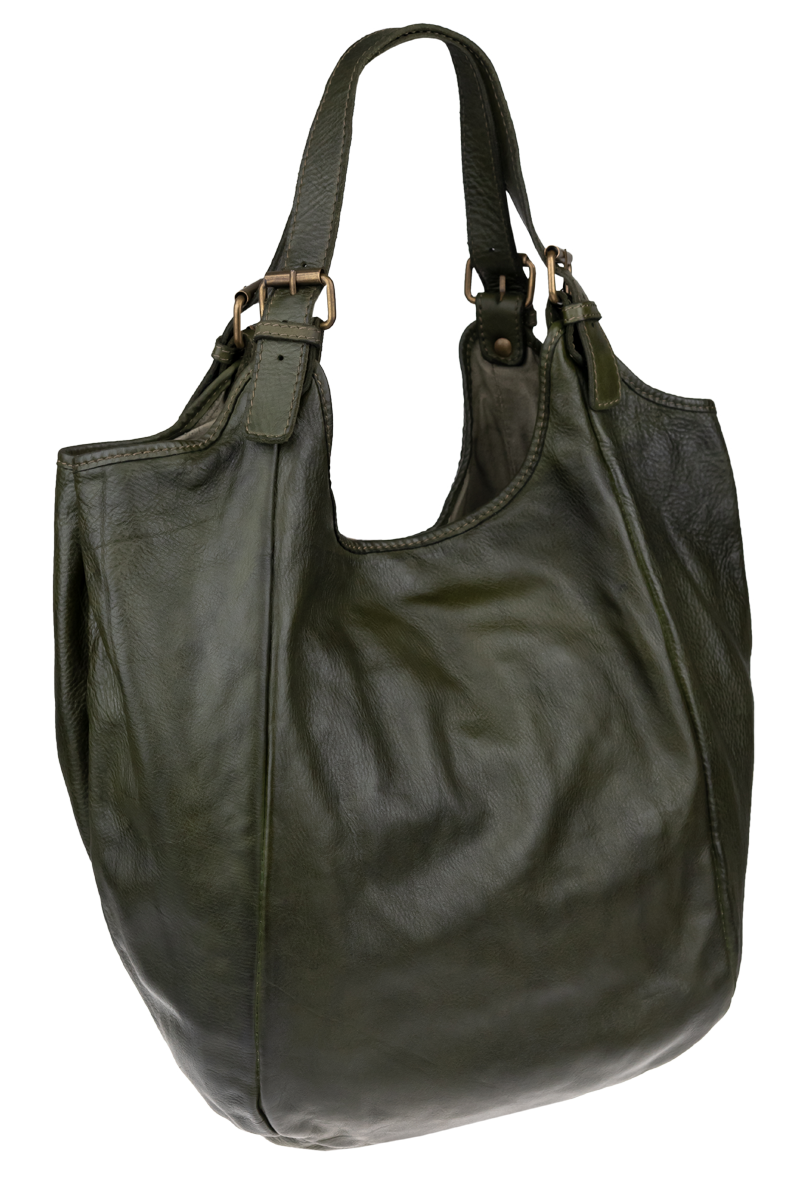 Praktická prostorná kabelka přes rameno v zelené barvě. Pohodlně se do ní vejdou dokumenty formátu A4. Tato kožená kabelka má nastavitelná ucha a je uzavíratelná na magnetický patentek. Uvnitř disponuje kapsou na zip, přepážkou fungující jako další kapsa na zip a také dvěma malými kapsami např. pro vaši peněženku a mobil.