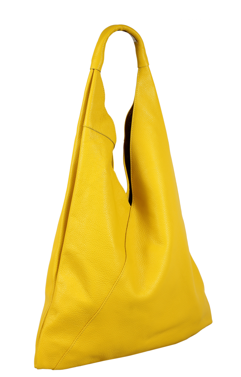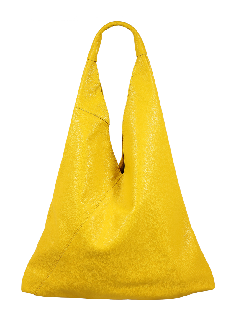 Velmi krásná kabelka trojúhelníkového tvaru, patří k našim nejoblíbenějším kabelkám. Kabelka má jednoduchý design bez zbytečných ozdob, je elegantní a dostatečně prostorná. Kabelka uvnitř disponuje dvěma pásky, které můžete zavázat a chránit tak Vaše cennosti.