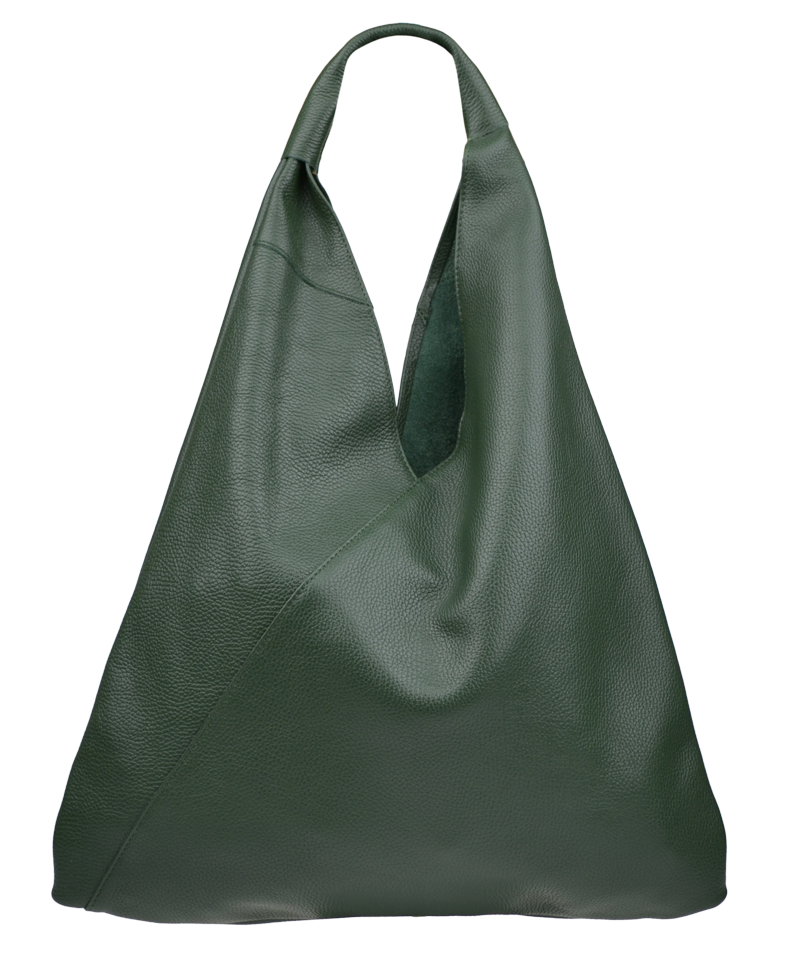 Velmi krásná kabelka trojúhelníkového tvaru, patří k našim nejoblíbenějším kabelkám. Kabelka má jednoduchý design bez zbytečných ozdob, je elegantní a dostatečně prostorná. Kabelka uvnitř disponuje dvěma pásky, které můžete zavázat a chránit tak Vaše cennosti.