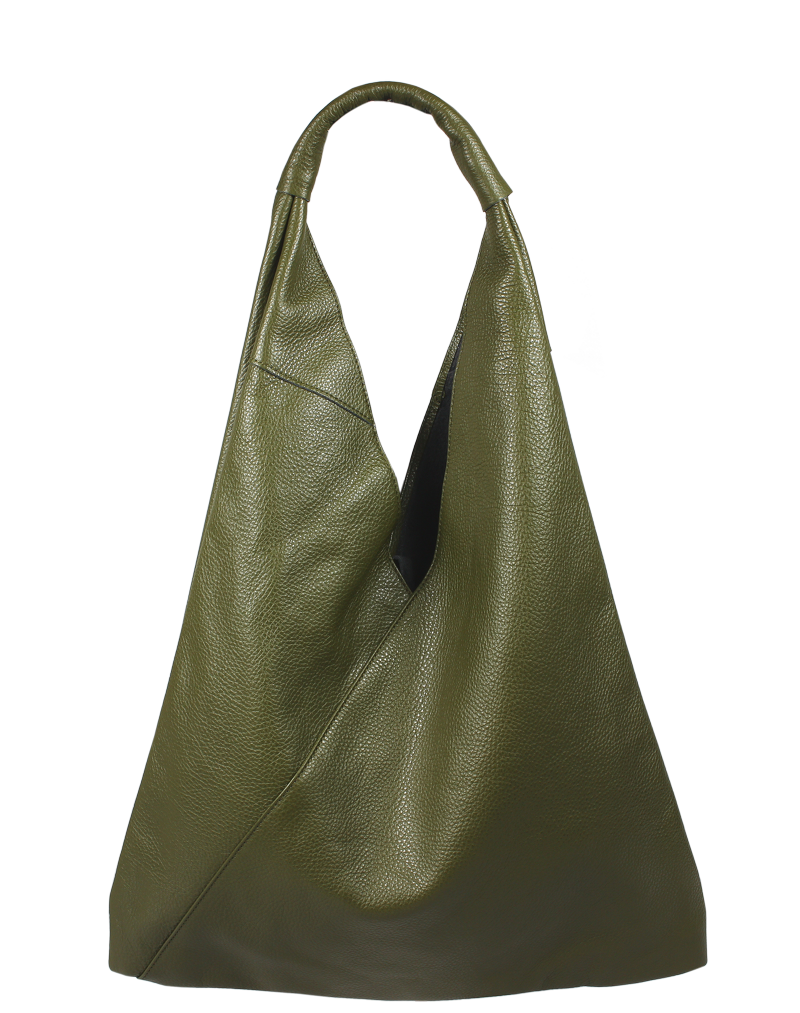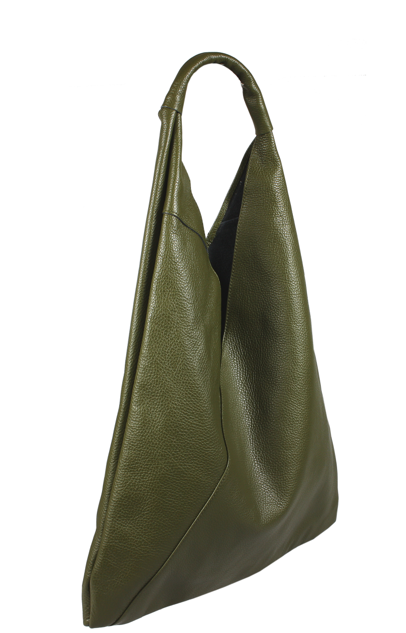 Velmi krásná kabelka trojúhelníkového tvaru, patří k našim nejoblíbenějším kabelkám. Kabelka má jednoduchý design bez zbytečných ozdob, je elegantní a dostatečně prostorná. Kabelka uvnitř disponuje dvěma pásky, které můžete zavázat a chránit tak Vaše cennosti.