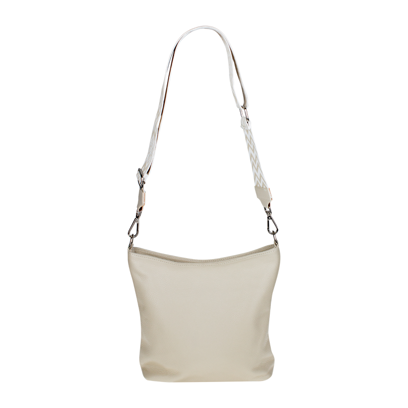 Klasická praktická kabelka s jednoduchým designem a stylovým přídavným popruhem. Nositelná přes rameno nebo crossbody. Kabelka je uzavíratelná na zip a je vyrobena z pravé poctivé kůže. Uvnitř kabelky najdeme přepážku uprostřed, která zároveň slouží jako kapsa na zip, a na bočních stěnách pak kapsu na zip a na druhé straně další malou kapsu.