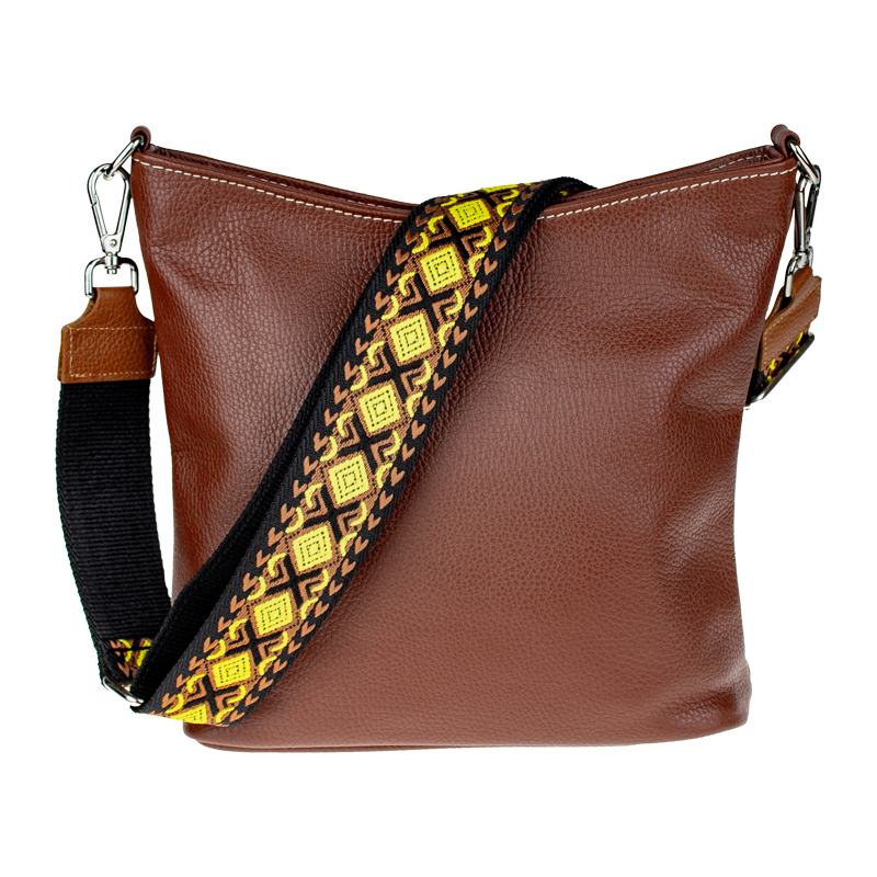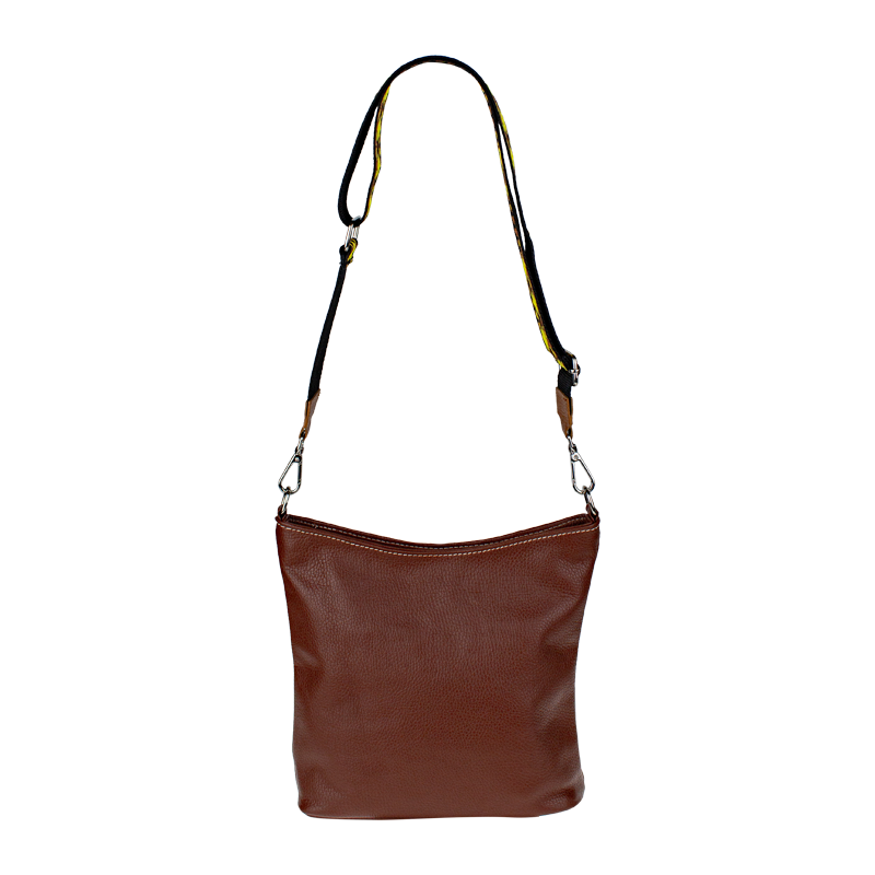 Klasická praktická kabelka s jednoduchým designem a stylovým přídavným popruhem. Nositelná přes rameno nebo crossbody. Kabelka je uzavíratelná na zip a je vyrobena z pravé poctivé kůže. Uvnitř kabelky najdeme přepážku uprostřed, která zároveň slouží jako kapsa na zip, a na bočních stěnách pak kapsu na zip a na druhé straně další malou kapsu.