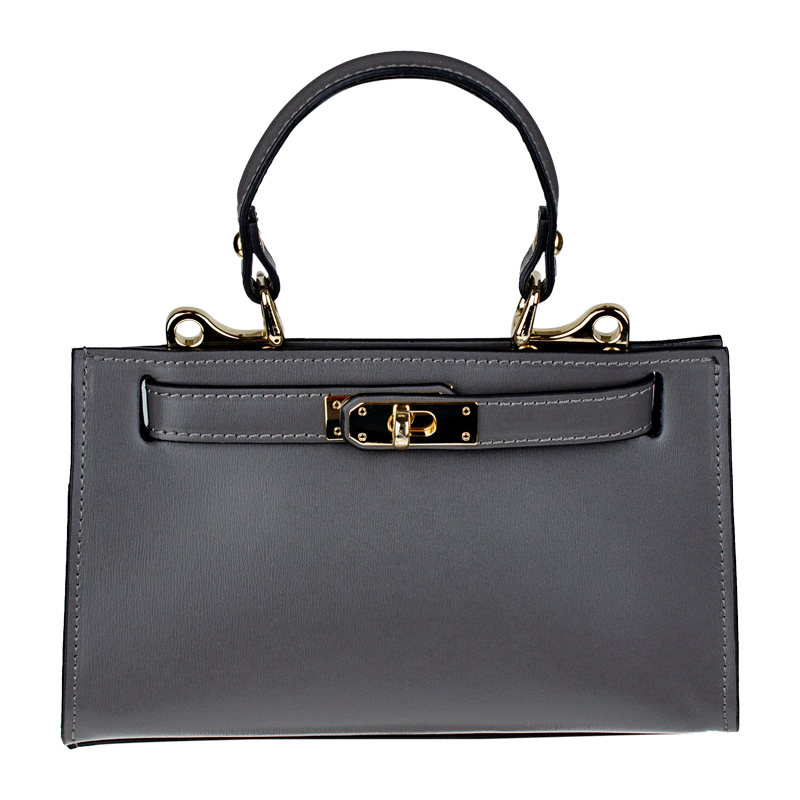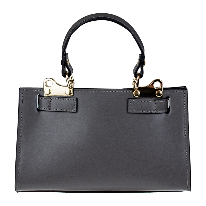 Malá kabelka z pevné kůže v antracitové barvě. Kabelku lze nosit v ruce nebo přes rameno. Max. délka přídavného pásku je 115 cm. Kabelka je vybavena důmyslným  a elegantním zapínáním. Uvnitř kabelky nalezneme kapsu na mobil či klíče.