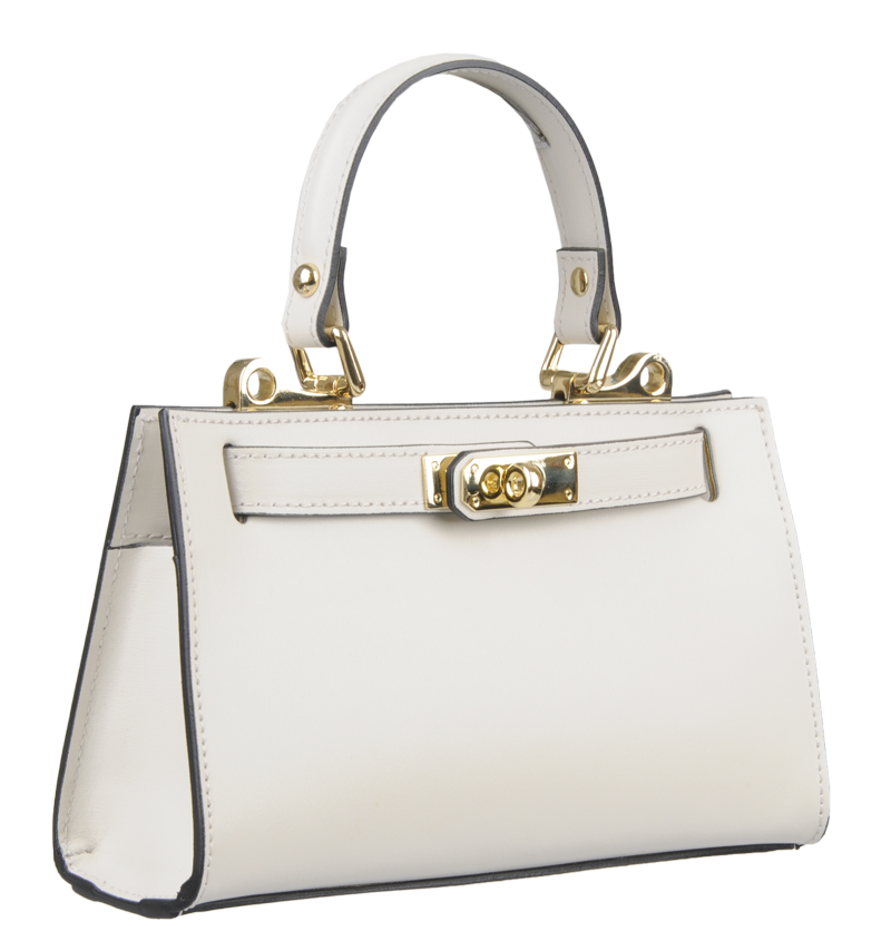Malá kabelka z pevné kůže v béžové barvě. Kabelku lze nosit v ruce nebo přes rameno. Max. délka přídavného pásku je 115 cm. Kabelka je vybavena důmyslným  a elegantním zapínáním. Uvnitř kabelky nalezneme kapsu na mobil či klíče.