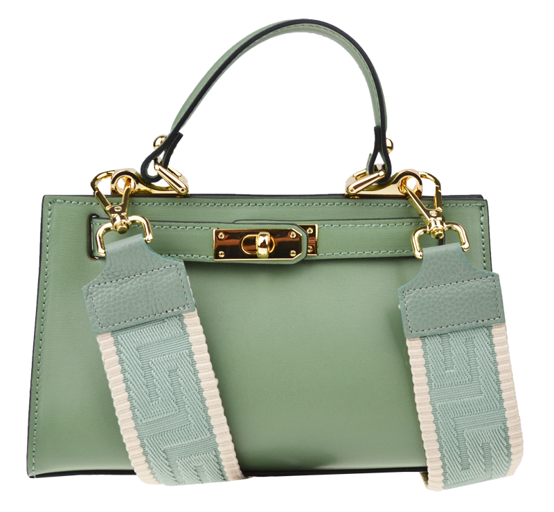 Malá kabelka z pevné kůže v zelené barvě. Kabelku lze nosit v ruce nebo přes rameno. Max. délka přídavného pásku je 115 cm. Kabelka je vybavena důmyslným  a elegantním zapínáním. Uvnitř kabelky nalezneme kapsu na mobil či klíče.
