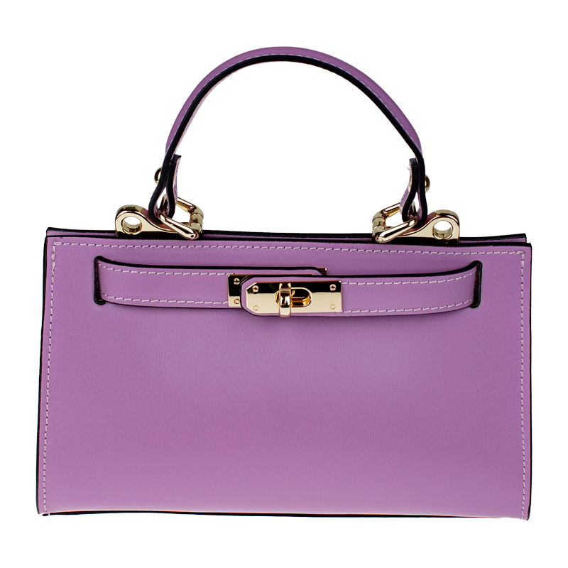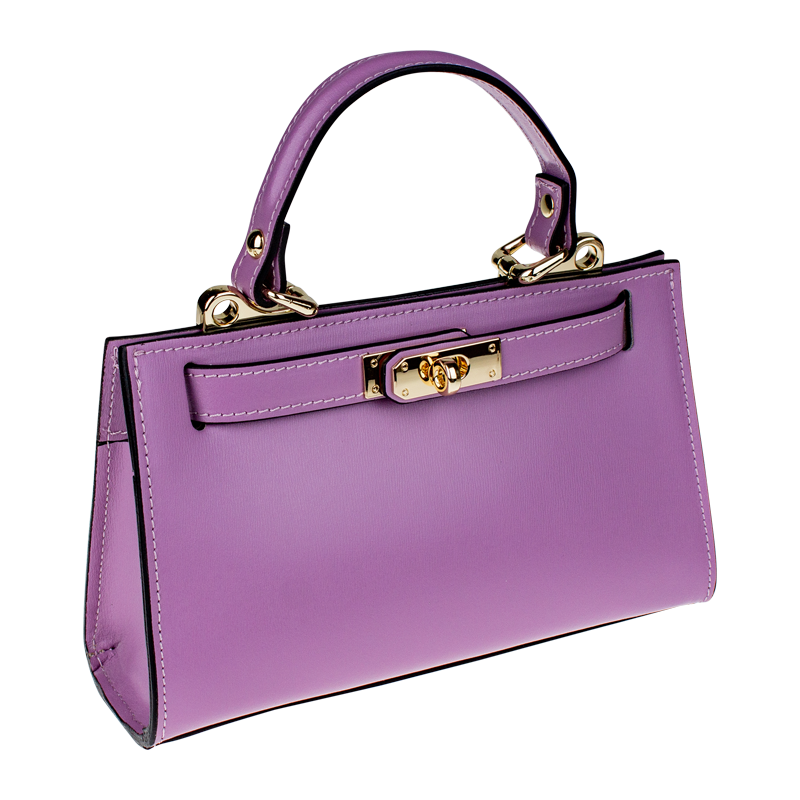 Malá kabelka z pevné kůže ve fialové barvě. Kabelku lze nosit v ruce nebo přes rameno. Max. délka přídavného pásku je 115 cm. Kabelka je vybavena důmyslným  a elegantním zapínáním. Uvnitř kabelky nalezneme kapsu na mobil či klíče.