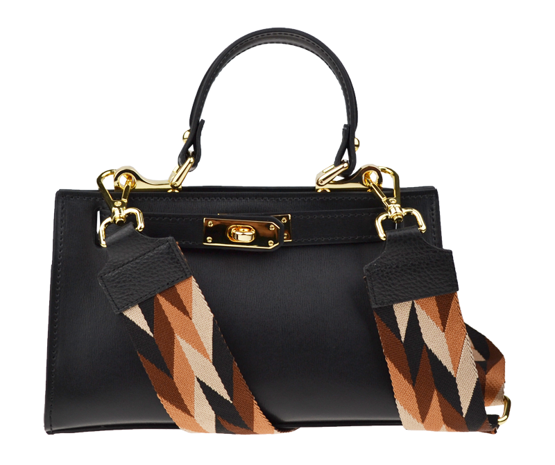 Malá kabelka z pevné kůže v černé barvě. Kabelku lze nosit v ruce nebo přes rameno. Max. délka přídavného pásku je 115 cm. Kabelka je vybavena důmyslným  a elegantním zapínáním. Uvnitř kabelky nalezneme kapsu na mobil či klíče.