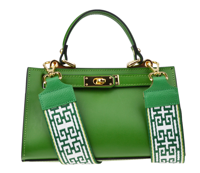 Malá kabelka z pevné kůže v zelené barvě. Kabelku lze nosit v ruce nebo přes rameno. Max. délka přídavného pásku je 115 cm. Kabelka je vybavena důmyslným  a elegantním zapínáním. Uvnitř kabelky nalezneme kapsu na mobil či klíče.