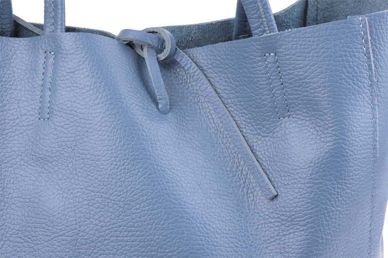 Horní část kabelky lze stáhnout pomocí kožené šňůrky, což dodává šarm a zároveň částečně zajišťuje obsah.