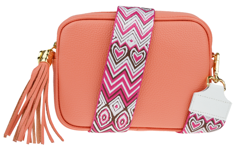 Malá praktická kožená kabelka v lososové barvě, kterou lze nosit přes rameno nebo cross-body (křížem). Kabelka se uzavírá pomocí zipu a uvnitř najdeme přihrádku pro vše potřebné.