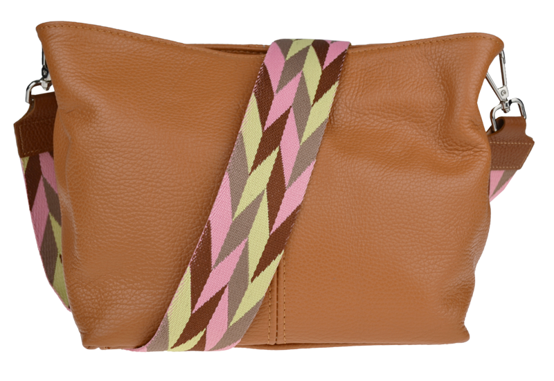 Kabelka nositelná přes rameno či cross-body (křížem) v moderní camel barvě. Tato kožená kabelka je uzavíratelná na zip. Uvnitř kabelky najdeme přepážku uprostřed, která zároveň slouží jako kapsa na zip, a na boční stěně pak kapsu na zip. Hloubka jejího dna je 13 cm. Kabelka má navíc nastavitelný popruh s maximální délkou cca 120 cm.
