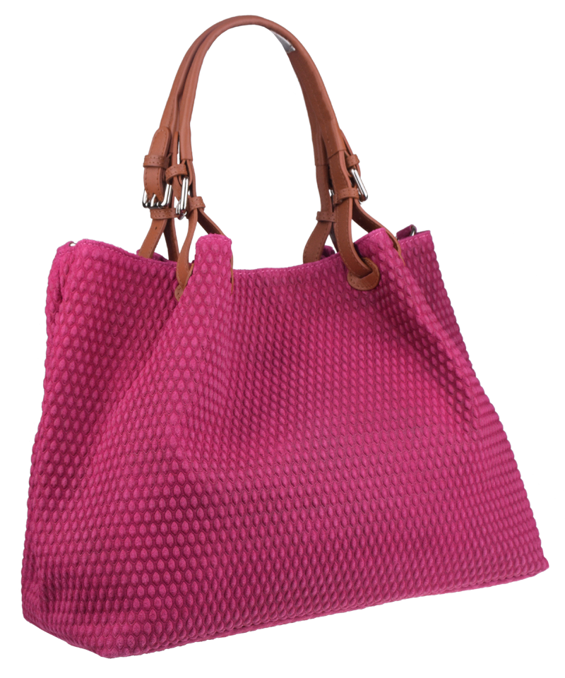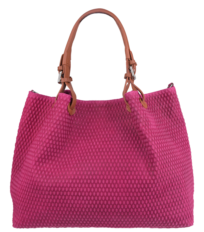 Moderní oblíbená kabelka s nekonvečním futuristickým designem v růžové barvě. Tato kožená kabelka je uzavíratelná pomocí magnetického patentku. Její materiálem je pravá kůže. Disponuje nastavitelnými uchy, takže jí lze nosit přes rameno. Součástí balení je přídavný pásek v plné délce cca 105 cm. Uvnitř kabelky najdeme přepážku uprostřed, která zároveň slouží jako kapsa na zip, a na bočních stěnách pak kapsu na zip a na druhé straně další malou kapsu. Pohodlně se do ní vejdou dokumenty formátu A4.