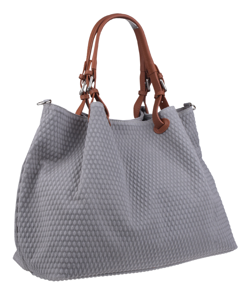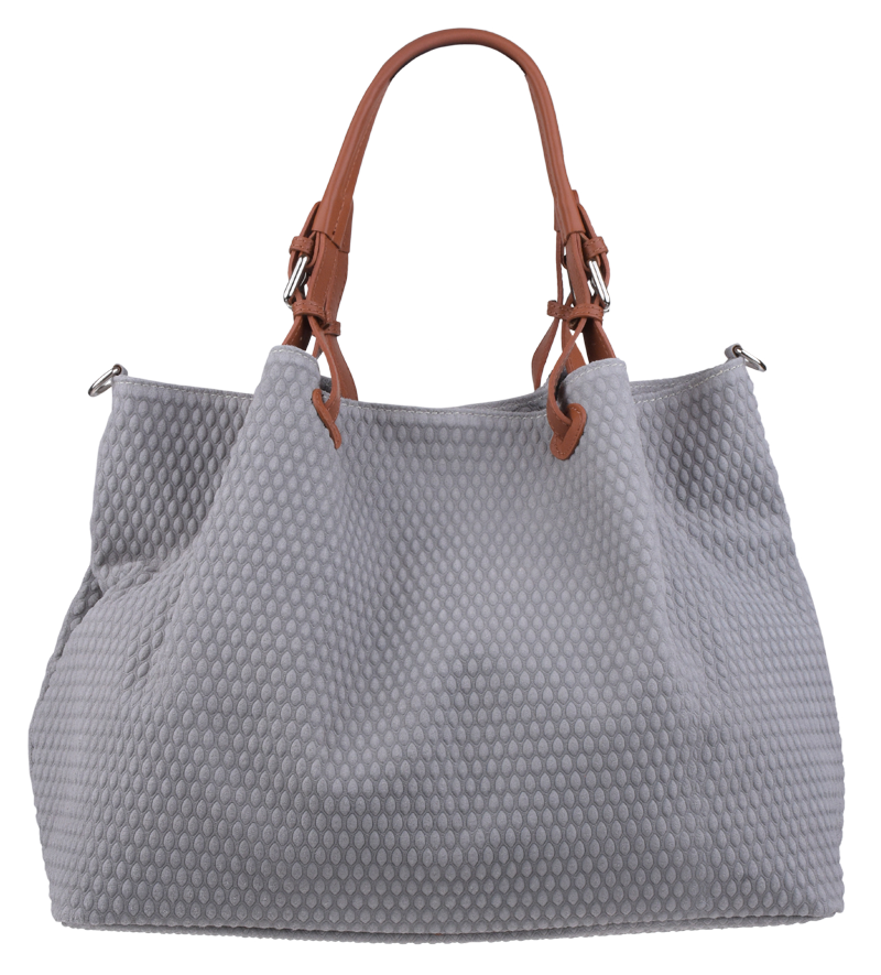 Moderní oblíbená kabelka s nekonvečním futuristickým designem v šedivé barvě. Tato kožená kabelka je uzavíratelná pomocí magnetického patentku. Její materiálem je pravá kůže avšak se strukturovanou texturou. Disponuje nastavitelnými uchy, takže jí lze nosit přes rameno. Součástí balení je přídavný pásek v plné délce cca 105 cm. Uvnitř kabelky najdeme přepážku uprostřed, která zároveň slouží jako kapsa na zip, a na bočních stěnách pak kapsu na zip a na druhé straně další malou kapsu. Pohodlně se do ní vejdou dokumenty formátu A4.
