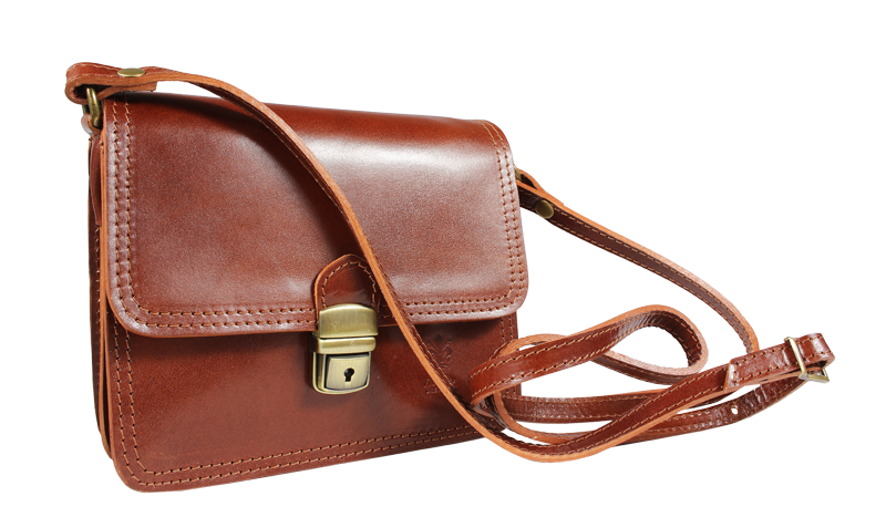 Malá šikovná kabelka se zajímavým tvarem. Kabelka je vyrobená z pravé kůže, která velice dobře drží svůj tvar. Je vhodná na nošení přes rameno nebo cross-body (křížem).