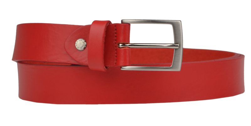 Pásek v červené barvě je vyroben z pravé jemné hovězí kůže. Má decentní sponu stříbrné barvy. Šířka pásku je 2,9 cm. Prvotřídní kvalita od italského výrobce.