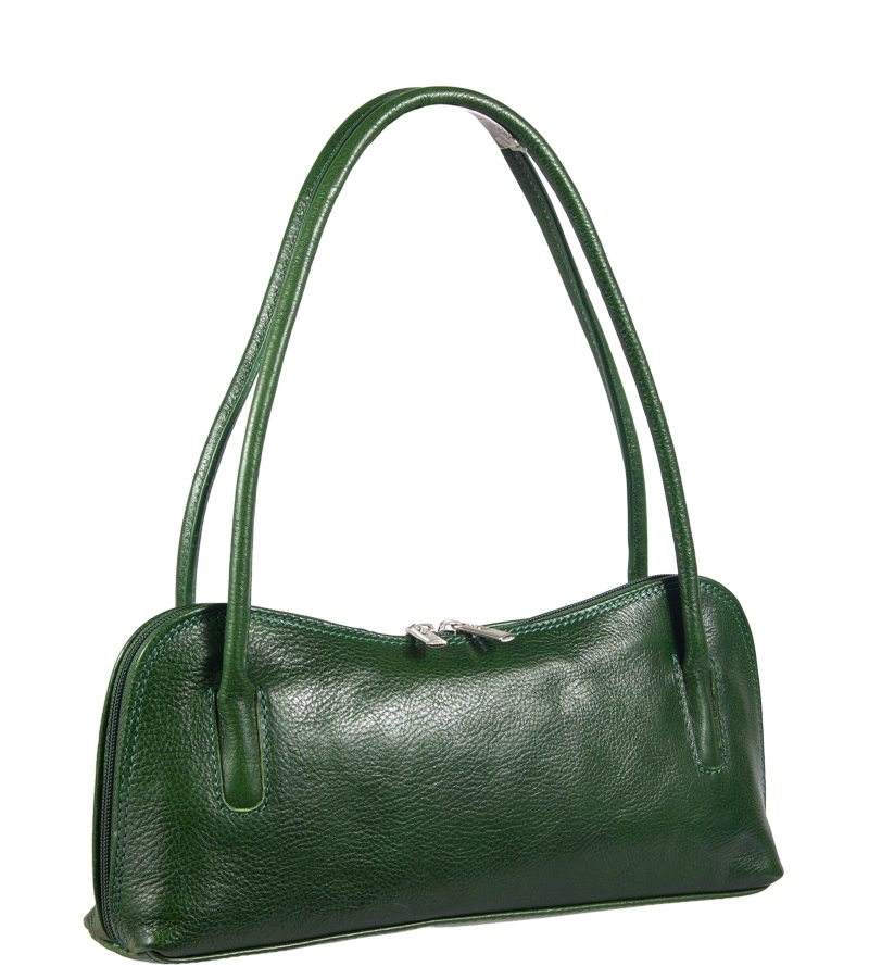 Malá, ale velmi oblíbená praktická zelená kabelka vyrobena z pravé pevné kůže, která si velmi dobře drží svůj tvar. Je vhodná k nošení přes rameno. Uvnitř disponuje malou kapsičkou na zip. Kabelka je vhodná nejen pro každodenní nošení do práce či do města, ale i na významnější či slavnostní příležitosti.