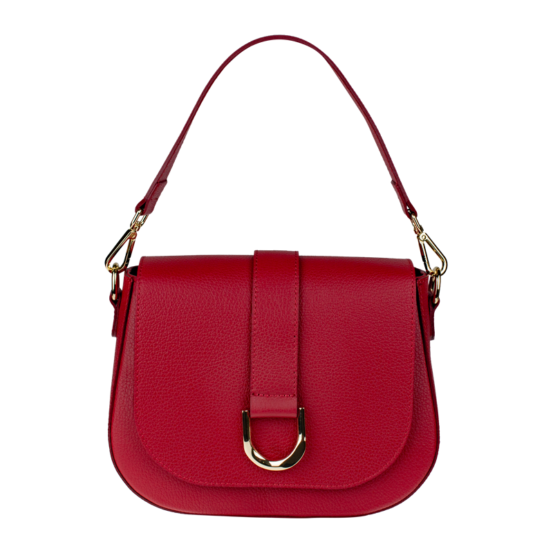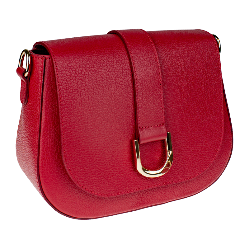 Tmavě-červená kabelka nositelná přes rameno či cross-body (křížem). Tato kožená kabelka je uzavíratelná na patentku a uvnitř nalezneme přihrádku na zip. Kabelka má  nastavitelný popruh s maximální délkou cca 118 cm.
