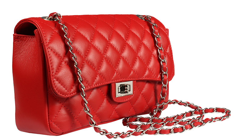 krásná červená kabelka z měkké kůže. Tato originální kabelka určená k nošení přes rameno je vhodným doplňkem pro pravidelné nošení. Kabelka je uzavíratelná důmyslnou patentkou, která zároveň slouží jako ozdobný prvek. Uvnitř kabelky nalezneme kapsu na zip. Délka řetízku přes rameno je 120 cm.