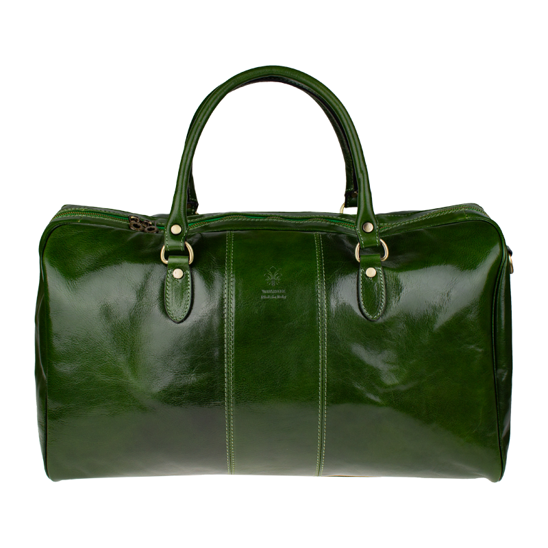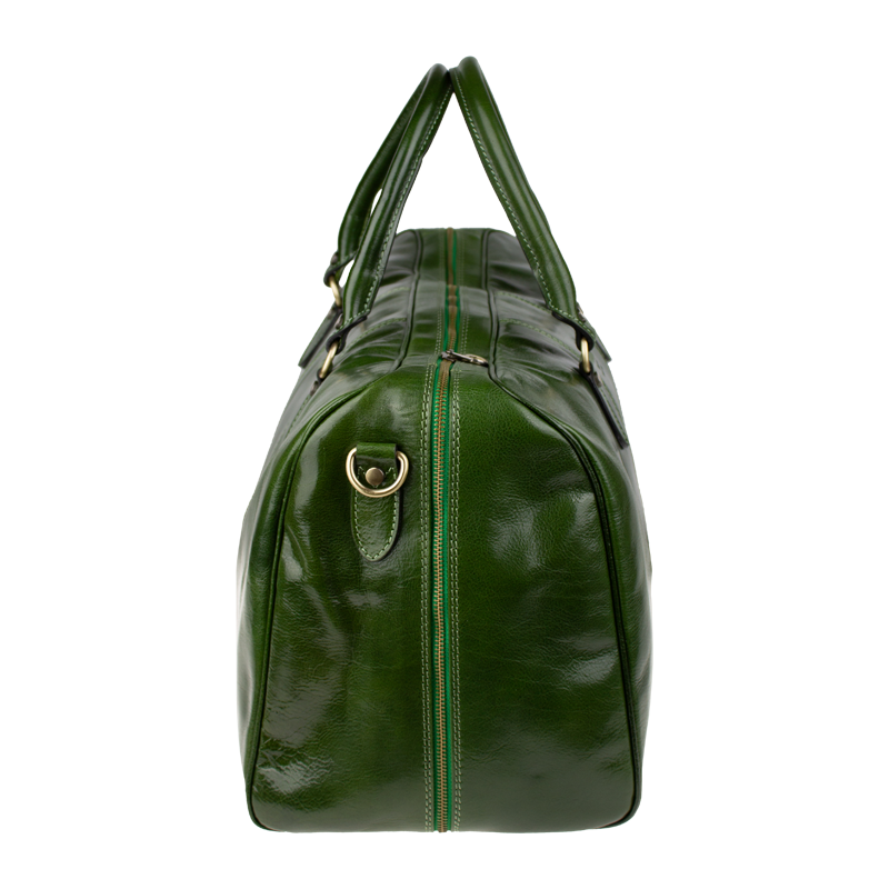 Luxusní kožená cestovní taška v zelené barvě. Taška je vyrobena z hladké kvalitní Italské kůže. Součástí tašky je přídavný popruh o délce 107 cm. Taška se uzavírá kovovým zipem. Cestujte stylově s koženou taškou!