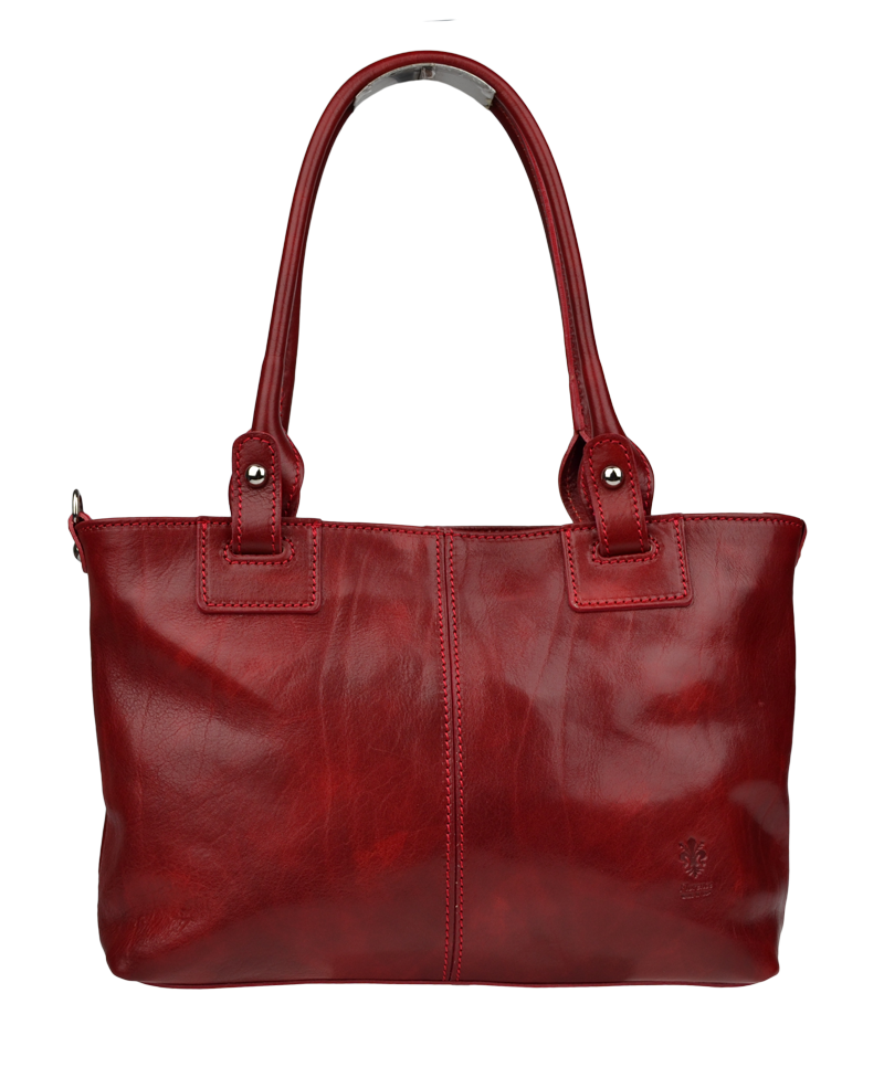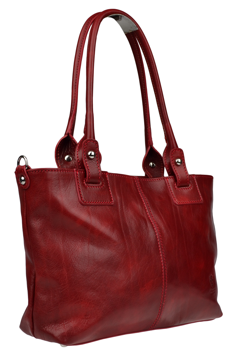Praktická a prostorná kožená kabelka v červené barvě. Jednoduché provedení a velký prostor dělá tuto kabelku neobyčejně praktickou pro denní nošení. Vnitřek kabelky je vybaven kapsou na zip a dvěma malými přihrádkami.