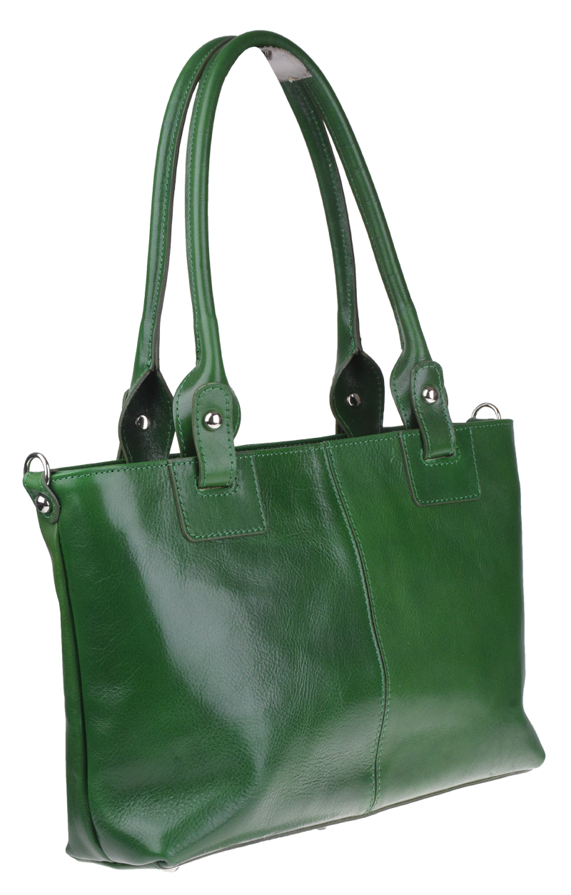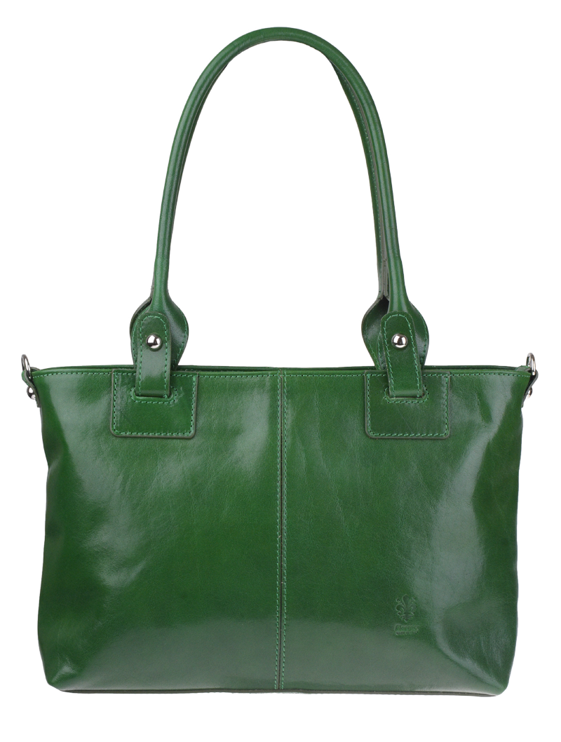Praktická a prostorná kožená kabelka v zelené barvě. Jednoduché provedení a velký prostor dělá tuto kabelku neobyčejně praktickou pro denní nošení. Vnitřek kabelky je vybaven kapsou na zip a dvěma malými přihrádkami.