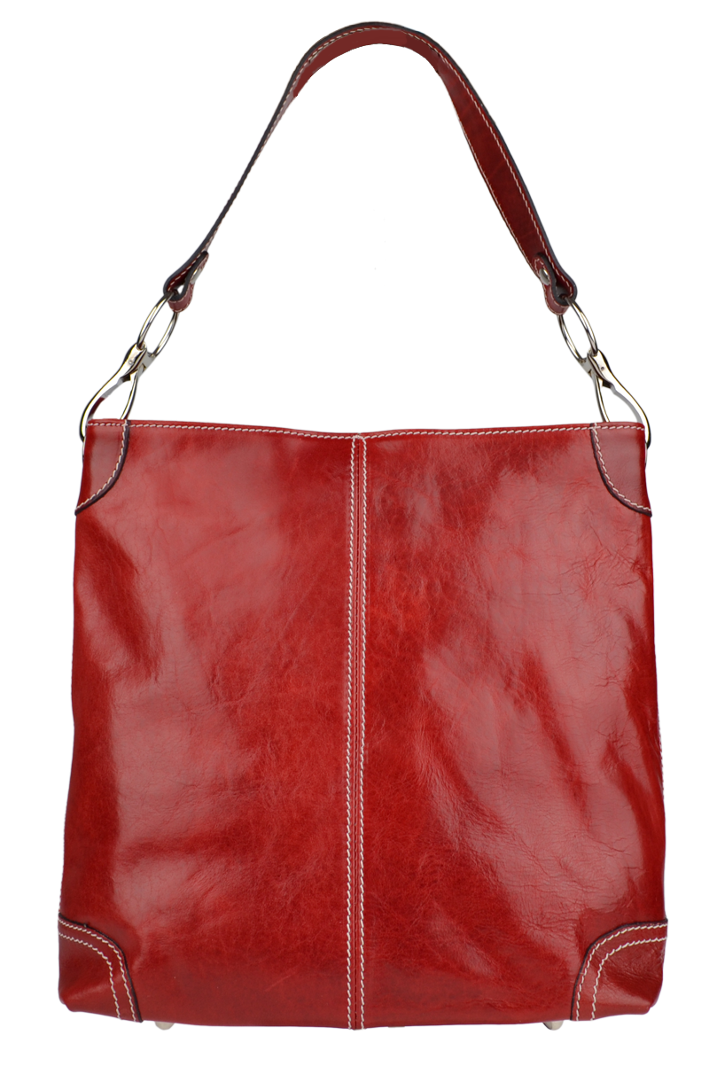 Praktická, ale zároveň elegantní kabelka s jednoduchým designem v červené barvě. Pohodlně se do ní vejdou dokumenty formátu A4. Nositelná přes rameno. Je vyrobena z leštěné hladké kůže.