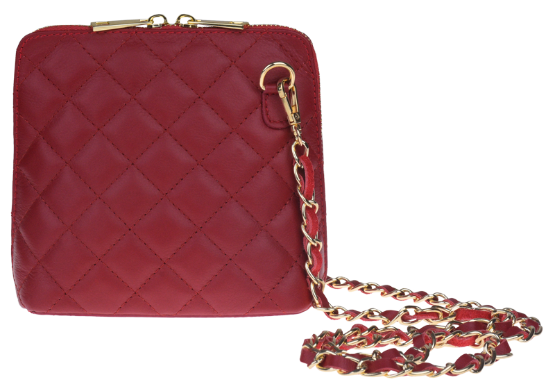 Elegantní, ale zároveň velmi praktická kabelka malých rozměrů vyrobena z pravé růžové kůže. Díky pásku se zlatým řetízkem je nositelná přes rameno. Zip, kterým se uzavírá, vede po hraně kabelky až po spodní okraj na obou stranách, a proto je její vnitřek dobře dostupný. Na vnější zadní straně najdete na kabelce malou kapsu na zip a uvnitř dělí celý prostor na dvě části příčka, která současně slouží jako kapsa na zip. Hloubka jejího dna je 8 cm. Délka přídavného řetízku je cca 120 cm.