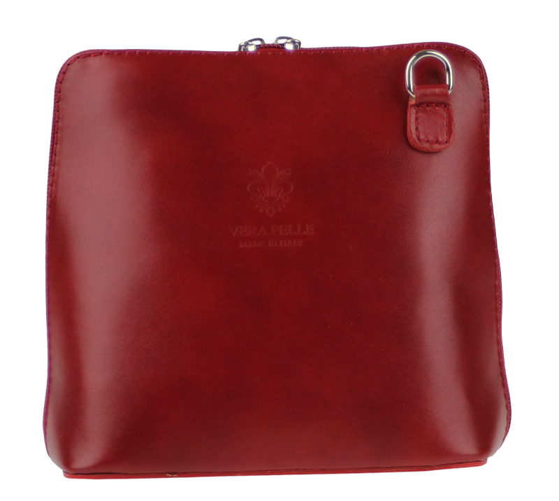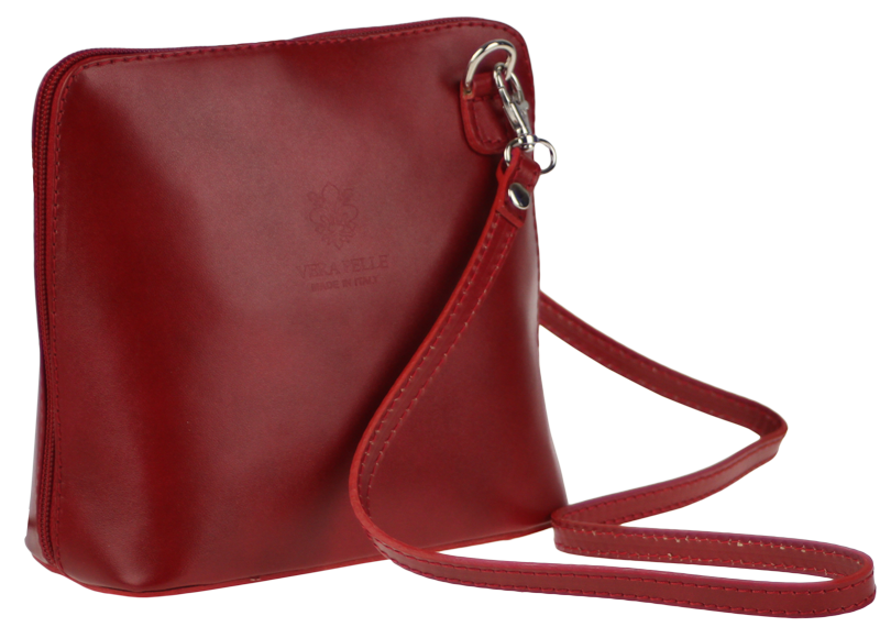 Elegantní, ale zároveň velmi praktická červená kabelka malých rozměrů vyrobena z pravé kůže. Díky tenkému pásku je nositelná přes rameno. Zip, kterým se uzavírá, vede po hraně kabelky až po spodní okraj na obou stranách, a proto je její vnitřek dobře dostupný. Na vnější zadní straně najdete na kabelce malou kapsu na zip a uvnitř dělí celý prostor na dvě části příčka, která současně slouží jako kapsa na zip. Hloubka jejího dna je 8 cm. Délka přídavného popruhu je cca 120 cm.