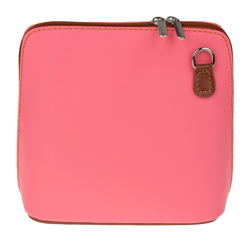 Elegantní, ale zároveň velmi praktická růžová kabelka malých rozměrů vyrobena z pravé kůže. Díky tenkému pásku je nositelná přes rameno. Zip, kterým se uzavírá, vede po hraně kabelky až po spodní okraj na obou stranách, a proto je její vnitřek dobře dostupný. Na vnější zadní straně najdete na kabelce malou kapsu na zip a uvnitř dělí celý prostor na dvě části příčka, která současně slouží jako kapsa na zip. Hloubka jejího dna je 8 cm. Délka přídavného popruhu je cca 120 cm.