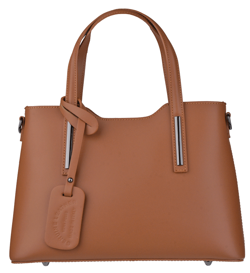 Praktická kabelka v camel provedení pro každodenní nošení vyrobená z pevné pravé kůže. Nosí se v ruce nebo na rameni. Kabelka je uzavíratelná na zip. Součástí balení je přídavný popruh – cca 107 cm v plné délce. Uvnitř kabelky najdeme přepážku uprostřed, která zároveň slouží jako kapsa na zip, a na bočních stěnách pak kapsu na zip a 2 malé kapsy vhodné např. pro mobil a peněženku.