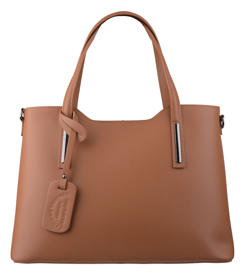Praktická kabelka v camel provedení pro každodenní nošení vyrobená z pevné pravé kůže. Nosí se v ruce nebo na rameni. Kabelka je uzavíratelná na zip. Součástí balení je přídavný popruh – cca 107 cm v plné délce. Uvnitř kabelky najdeme přepážku uprostřed, která zároveň slouží jako kapsa na zip, a na bočních stěnách pak kapsu na zip a 2 malé kapsy vhodné např. pro mobil a peněženku.