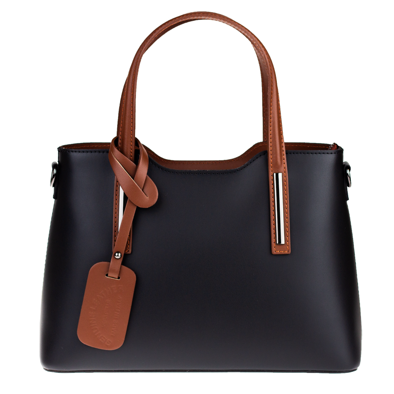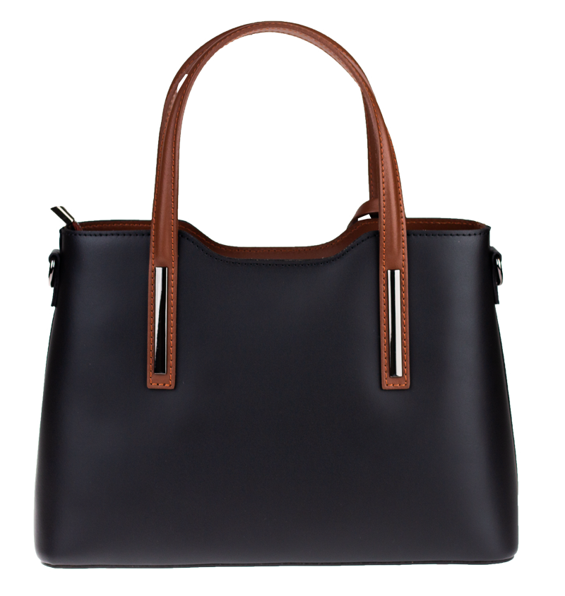Praktická kabelka v černém provedení pro každodenní nošení vyrobená z pevné pravé kůže. Nosí se v ruce nebo na rameni. Kabelka je uzavíratelná na zip. Součástí balení je přídavný nastavitelný popruh – cca 107 cm v plné délce. Uvnitř kabelky najdeme přepážku uprostřed, která zároveň slouží jako kapsa na zip, a na bočních stěnách pak kapsu na zip a 2 malé kapsy vhodné např. pro mobil a peněženku.