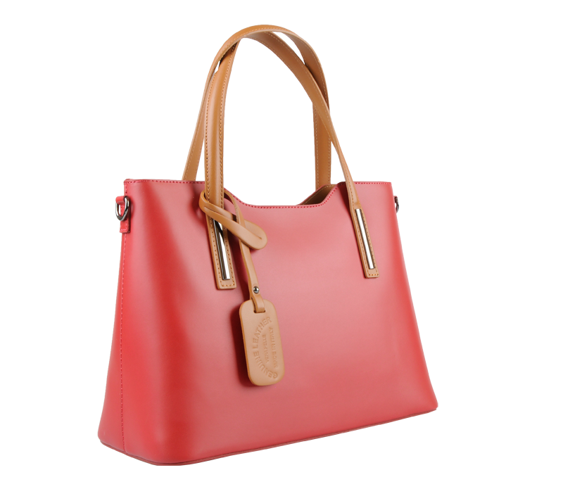 Praktická kabelka v červeném provedení pro každodenní nošení vyrobená z pevné pravé kůže. Nosí se v ruce nebo na rameni. Kabelka je uzavíratelná na zip. Součástí balení je přídavný  popruh – cca 107 cm v plné délce. Uvnitř kabelky najdeme přepážku uprostřed, která zároveň slouží jako kapsa na zip, a na bočních stěnách pak kapsu na zip a 2 malé kapsy vhodné např. pro mobil a peněženku.