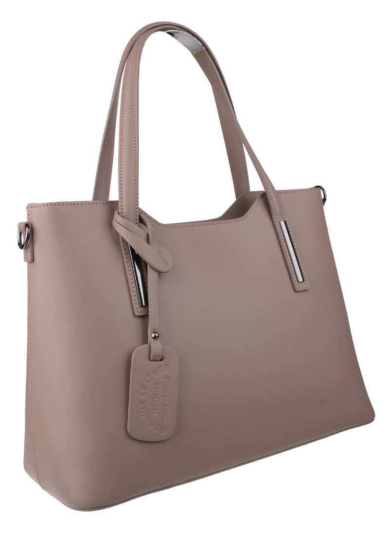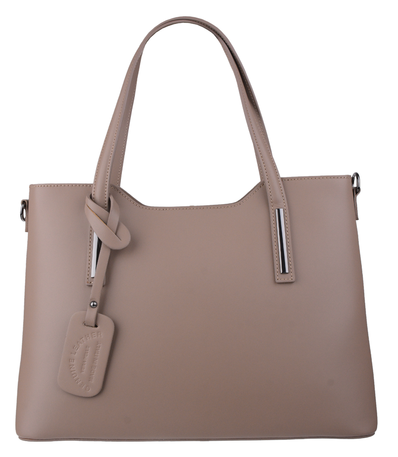 Praktická kabelka v šedo-hnědém provedení pro každodenní nošení vyrobená z pevné pravé kůže. Nosí se v ruce nebo na rameni. Kabelka je uzavíratelná na zip. Součástí balení je přídavný popruh – cca 107 cm v plné délce. Uvnitř kabelky najdeme přepážku uprostřed, která zároveň slouží jako kapsa na zip, a na bočních stěnách pak kapsu na zip a 2 malé kapsy vhodné např. pro mobil a peněženku.
