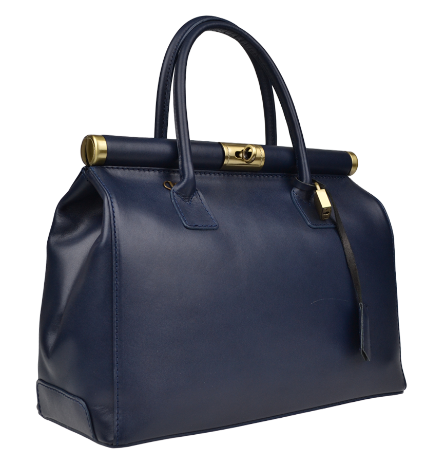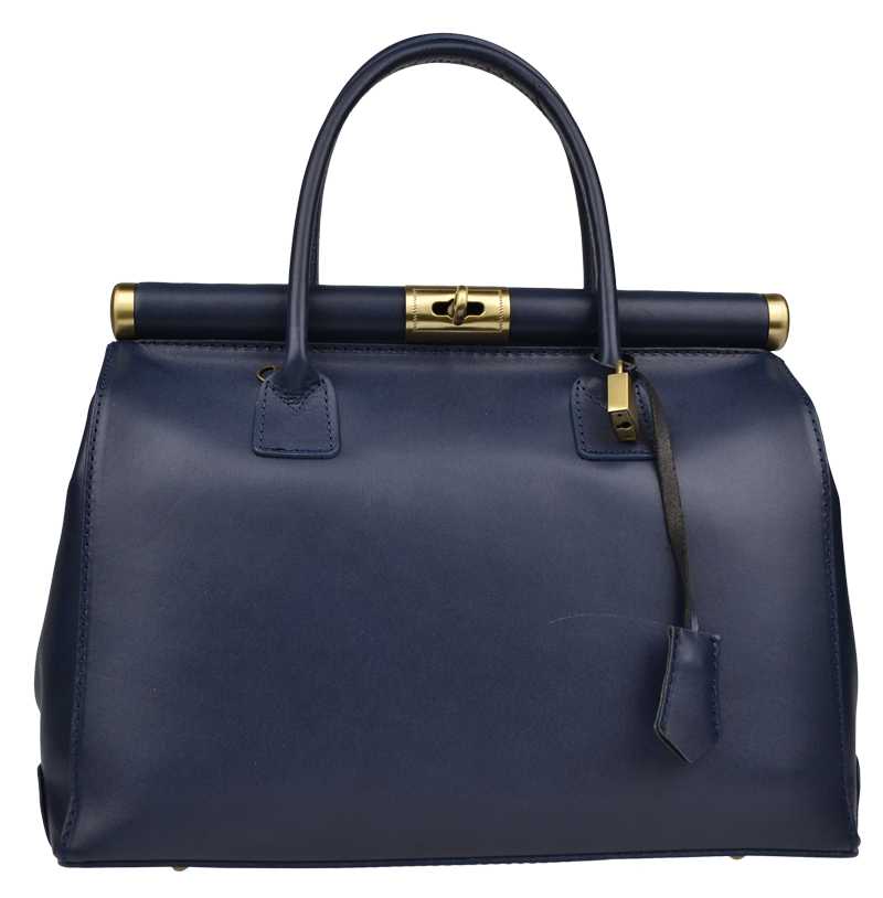 Kabelka zvaná též "doktorská" se může pochlubit kromě svého klasického designu tím, že dobře drží tvar. Tmavě modrá kožená kabelka je nositelná do ruky a uzavíratelná na patentek, který pak v případě potřeby můžete uzamknout přiloženým zámečkem. Jejím materiálem je pravá hladká kůže.  Uvnitř najdete kapsu na zip a 2 malé kapsy vhodné např. pro Váš mobil a peněženku a uprostřed je látková přepážka také s kapsou na zip. Kabelka má navíc k tomu všemu kapsu na zip na vnější zadní straně. Hloubka jejího dna je 15 cm. Další barevné varianty naleznete zde.