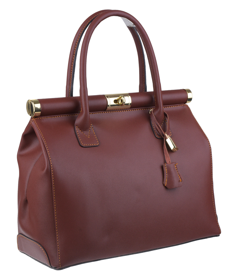 Tato kabelka zvaná též "doktorská" se může pochlubit kromě svého klasického designu tím, že dobře drží tvar. Tato kožená kabelka je nositelná do ruky a uzavíratelná na patentek, který pak v případě potřeby můžete uzamknout přiloženým zámečkem. Jejím materiálem je hladká pravá kůže v hnědé barvě. Uvnitř najdete kapsu na zip a 2 malé kapsy vhodné např. pro Váš mobil a peněženku a uprostřed je látková přepážka také s kapsou na zip. Kabelka má navíc k tomu všemu kapsu na zip na vnější zadní straně. Hloubka jejího dna je 15 cm. Další barevné varianty naleznete zde.