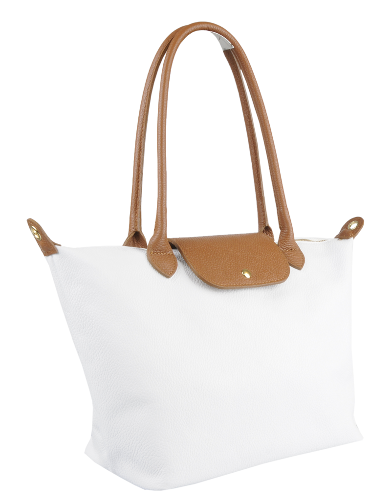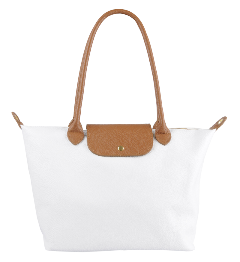 Praktická a prostorná kožená kabelka v bílé barvě. Jednoduché provedení a velký prostor dělá tuto kabelku neobyčejně praktickou pro denní nošení. Vnitřek kabelky je vybaven kapsou na zip. Přídavný popruh 120 cm.