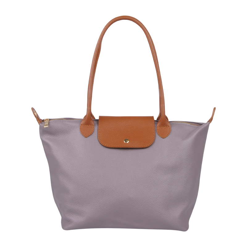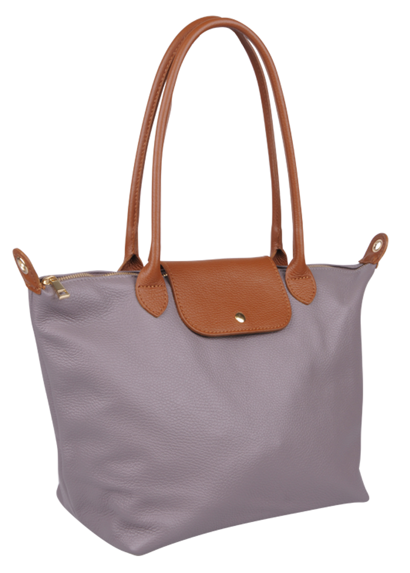 Praktická a prostorná kožená kabelka v šedé barvě. Jednoduché provedení a velký prostor dělá tuto kabelku neobyčejně praktickou pro denní nošení. Vnitřek kabelky je vybaven kapsou na zip. Přídavný popruh 120 cm.