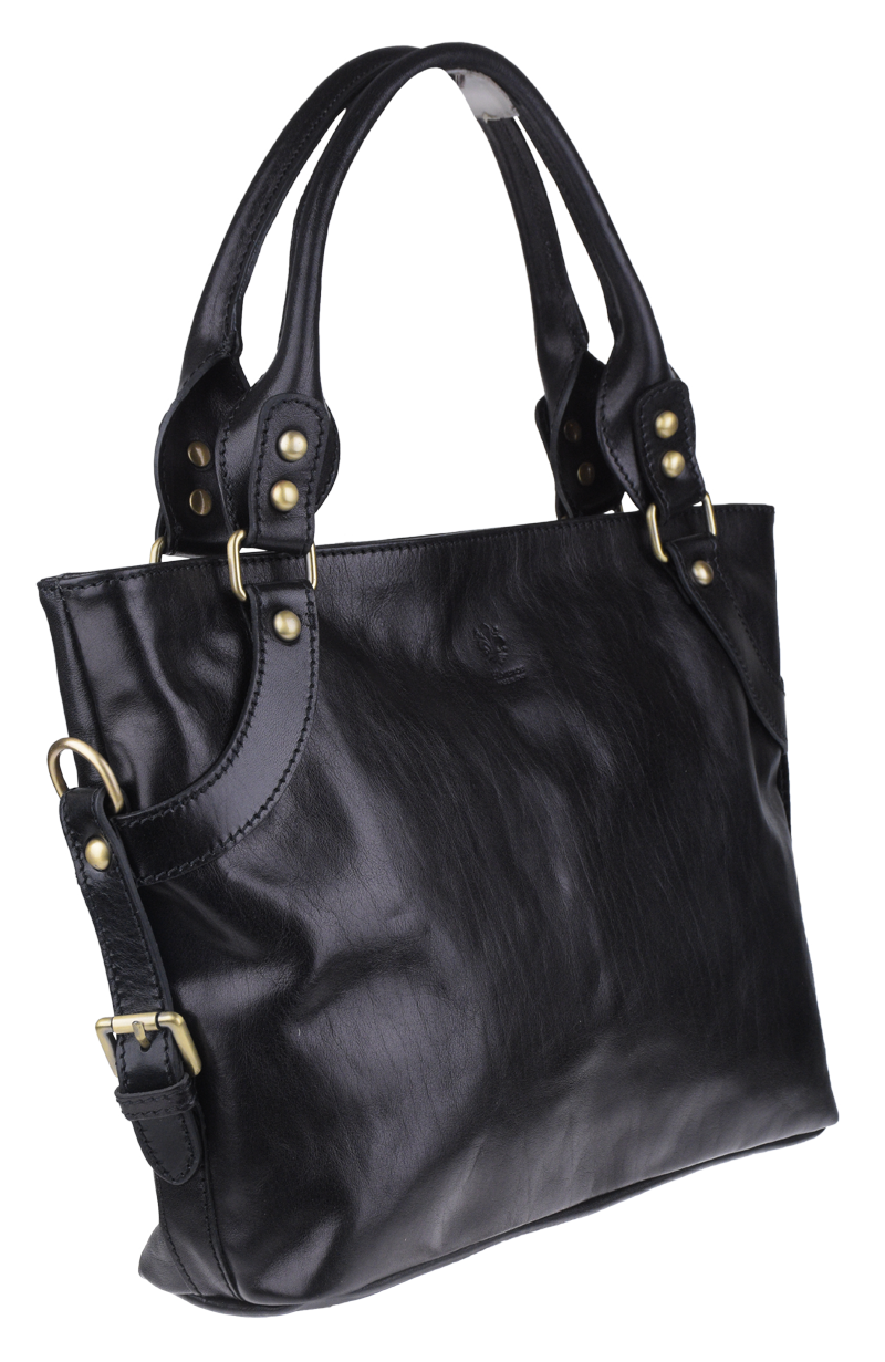 Praktická a prostorná kožená kabelka v černé barvě. Jednoduché provedení a velký prostor dělá tuto kabelku neobyčejně praktickou pro denní nošení. Vnitřek kabelky je vybaven kapsou na zip a dvěma malými přihrádkami.