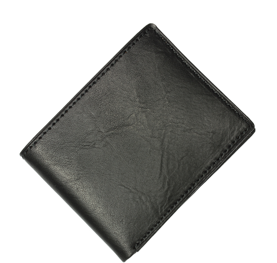 Malá pánská peněženka z přírodní kůže v černé barvě. Tenká peněženka kompaktních rozměrů obsahuje dostatek přihrádek a kapsiček na karty i hotovost.