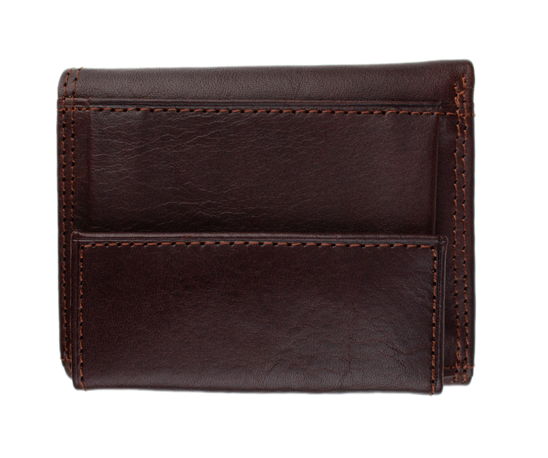 Na zadní straně peněženky se nachází samostatná kapsa na mince krytá klopou. Toto řešení nejen šetří místo uvnitř peněženky, ale také zabraňuje tomu, aby se peněženka nevzhledně "nafukovala", když máte více drobných.