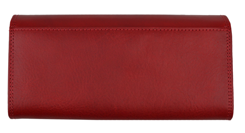 Elegantní dámská peněženka z prémiové matné kůže v červené barvě. Tato kožená peněženka podlouhlého obdélníkového tvaru se zavírá na patentek (cvoček). Má spoustu praktických přihrádek: zavírací dvoukomorovou kapsu na mince, jež zavírá pomocí dalšího patentku; 3 kapsy formátu bankovek; dále kapsu na zip a 9 míst na platební a jiné karty.