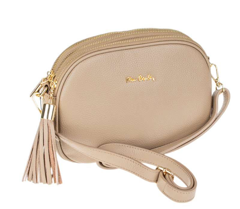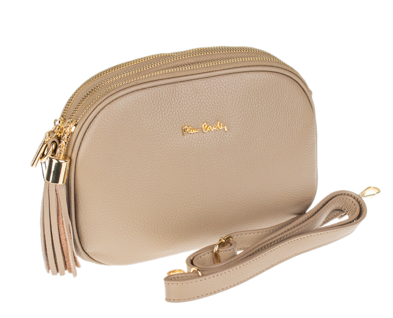 Praktická kabelka vyrobena z hovězí kůže v béžovo-hnědé barvě. Je vhodná na nošení přes rameno nebo crossbody. Součástí balení je přídavný nastavitelný pásek o délce 130 cm. Uzavírá se pomocí  zipu. Kabelka má 3 samostatně uzavíratelné přihrádky.