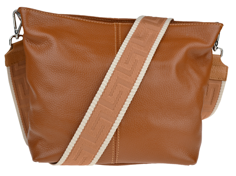 Camel kabelka nositelná přes rameno či cross-body (křížem). Tato kožená kabelka je uzavíratelná na zip. Uvnitř kabelky najdeme přepážku uprostřed, která zároveň slouží jako kapsa na zip, a na boční stěně pak kapsu na zip. Hloubka jejího dna je 13 cm. Kabelka má navíc nastavitelný popruh s maximální délkou cca 120 cm.