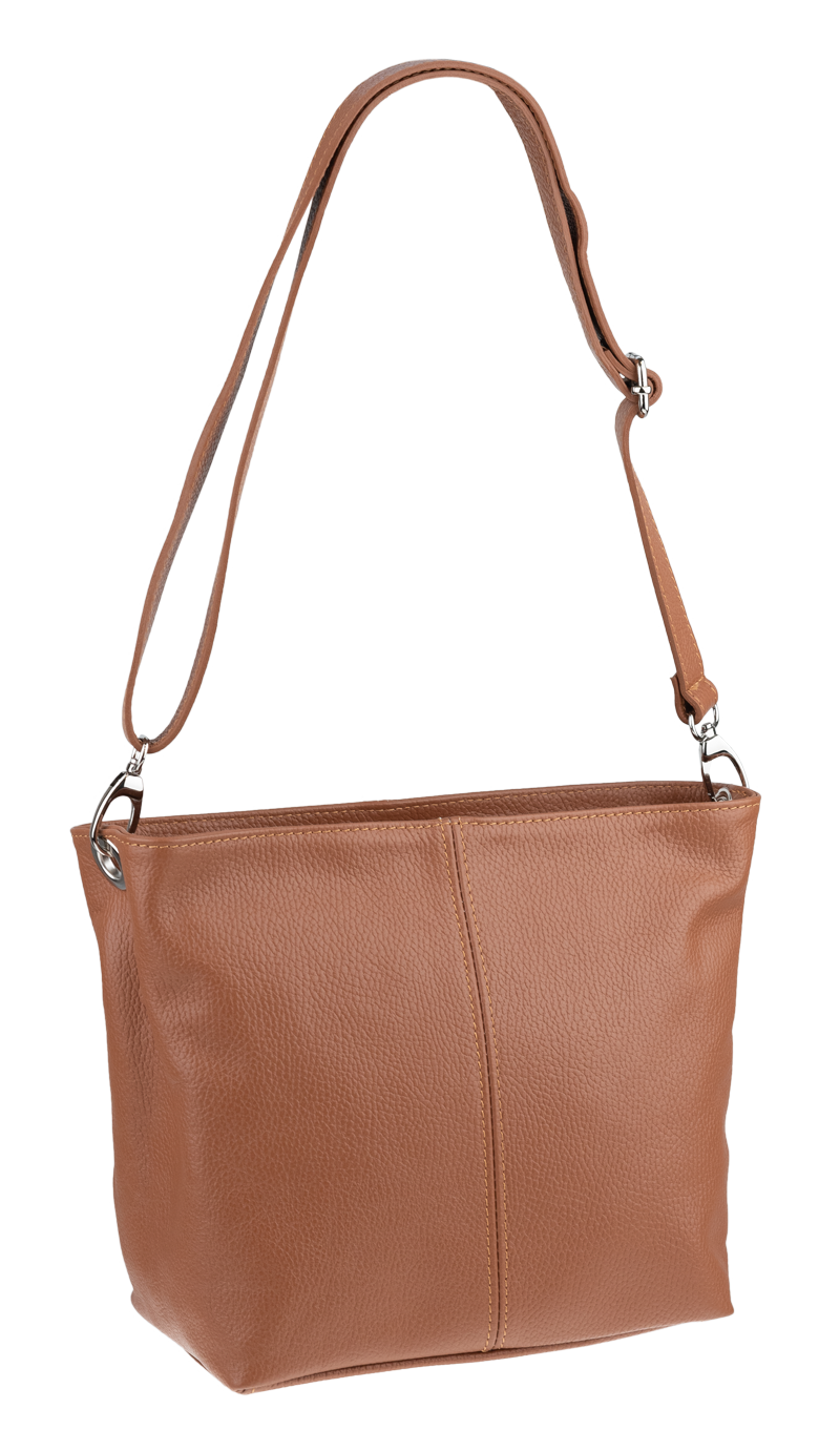 Camel kabelka nositelná přes rameno či cross-body (křížem). Tato kožená kabelka je uzavíratelná na zip. Uvnitř kabelky najdeme přepážku uprostřed, která zároveň slouží jako kapsa na zip, a na boční stěně pak kapsu na zip. Hloubka jejího dna je 13 cm. Kabelka má navíc nastavitelný popruh s maximální délkou cca 120 cm.