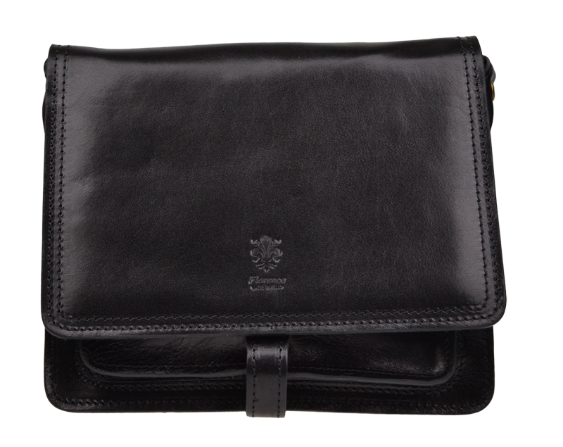 Kožená kabelka v černé barvě. Kabelka se uzavírá pomocí poklopu na patentky. Uvnitř kabelky jsou tři přihrádky. Délka popruhu je 130 cm.