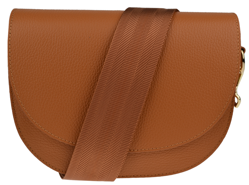 Camel kabelka nositelná přes rameno či cross-body (křížem). Tato kožená kabelka je uzavíratelná na patentku a uvnitř nalezneme přihrádku na zip.
