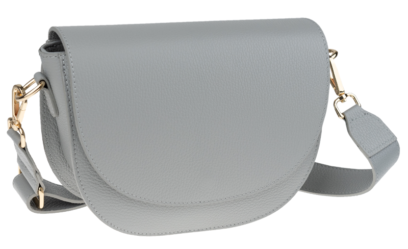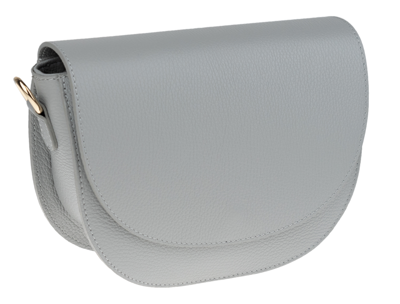 Šedá kabelka nositelná přes rameno či cross-body (křížem). Tato kožená kabelka je uzavíratelná na patentku a uvnitř nalezneme přihrádku na zip. Kabelka má  nastavitelný popruh s maximální délkou cca 140cm.