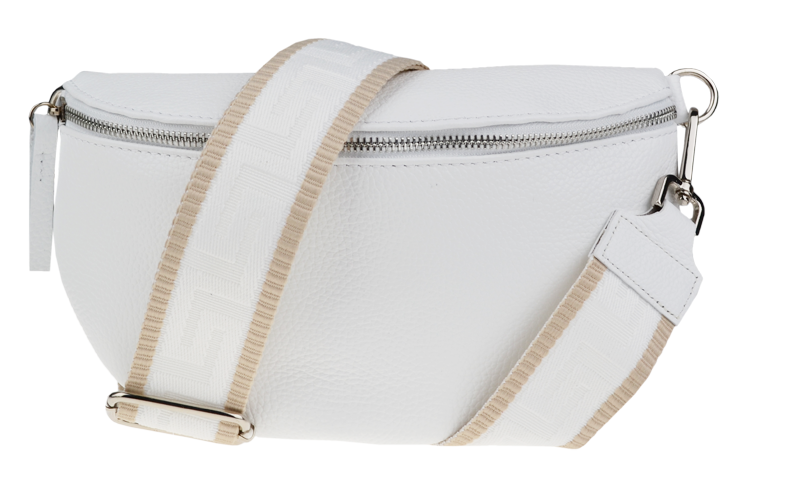 Elegantní, ale zároveň velmi praktická bílá ledvinka malých rozměrů vyrobena z pravé kůže.