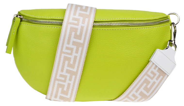 Elegantní, ale zároveň velmi praktická ledvinka v barvě limetky malých rozměrů vyrobena z pravé kůže.